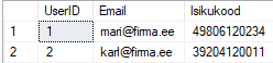 Kui UserID on primaarvõti, siis Email on alternatiivvõti.