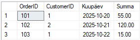 Tabelis Orders on veerg CustomerID võõrvõti, mis viitab Customers tabeli CustomerID.