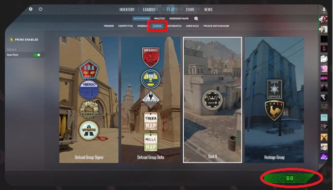 Your first gameOnce you are in the lobby, go to navigational menu, selected whichever gamemode you like, they all are similar and easy, then hit "GO" and enjoy your game!