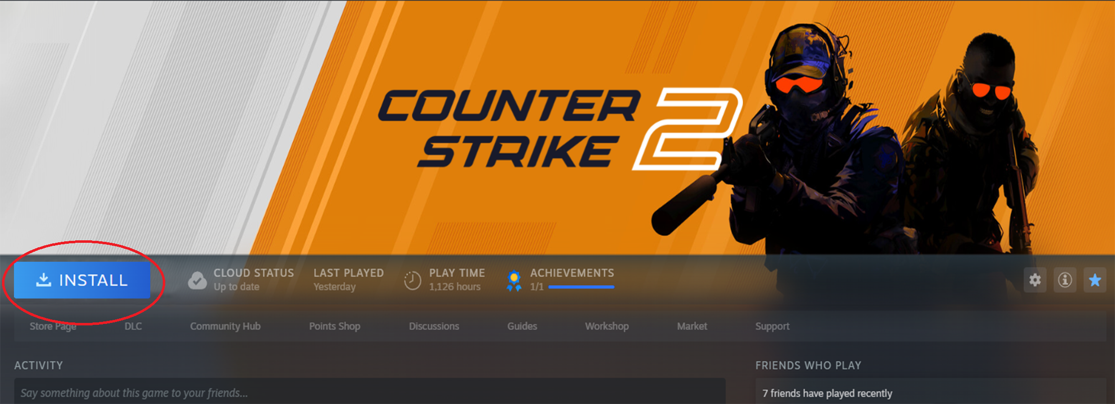 Install Counter-Strike 2Once you got to the game page, you'll find the big blue button "Install", press it and install the game.